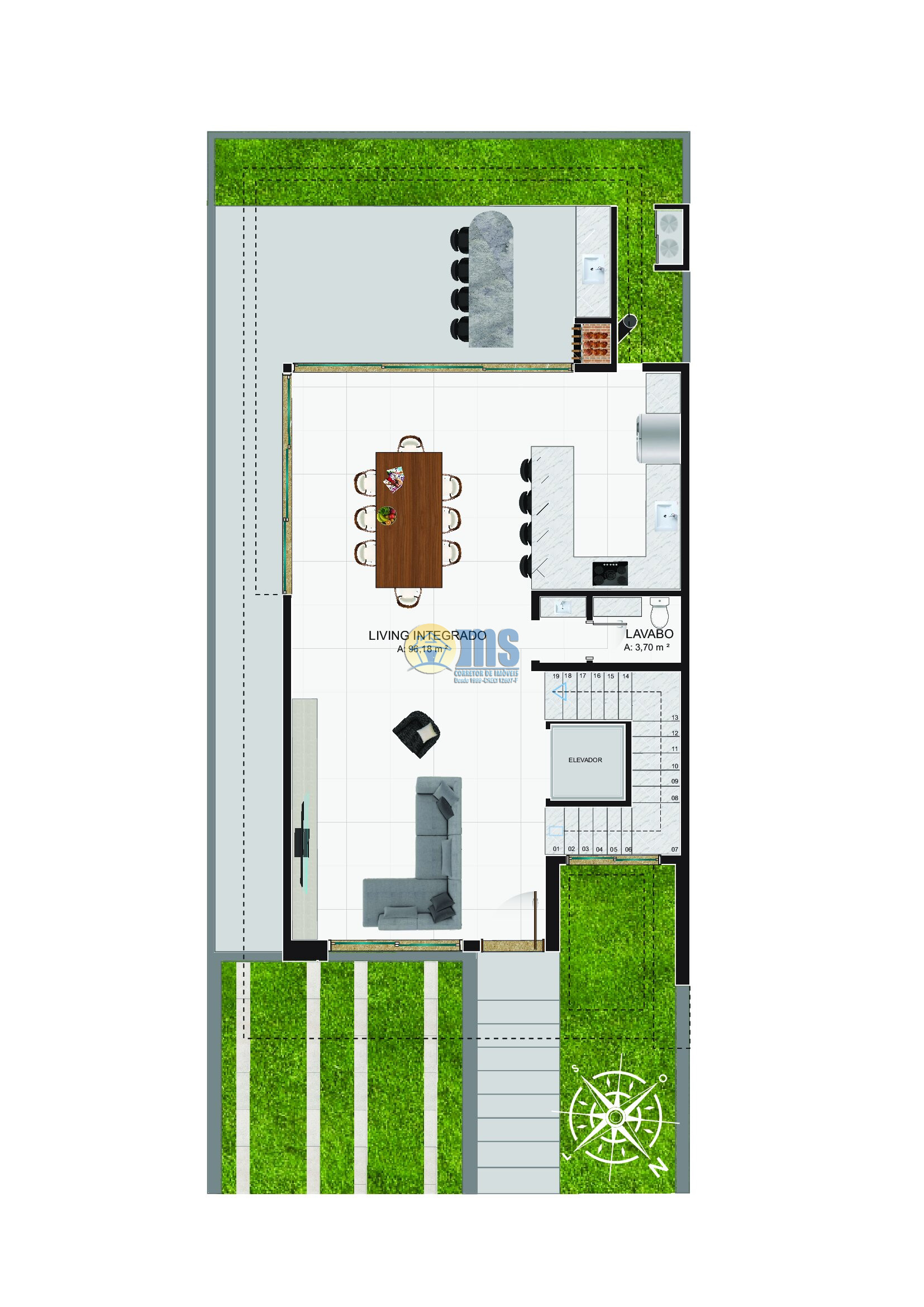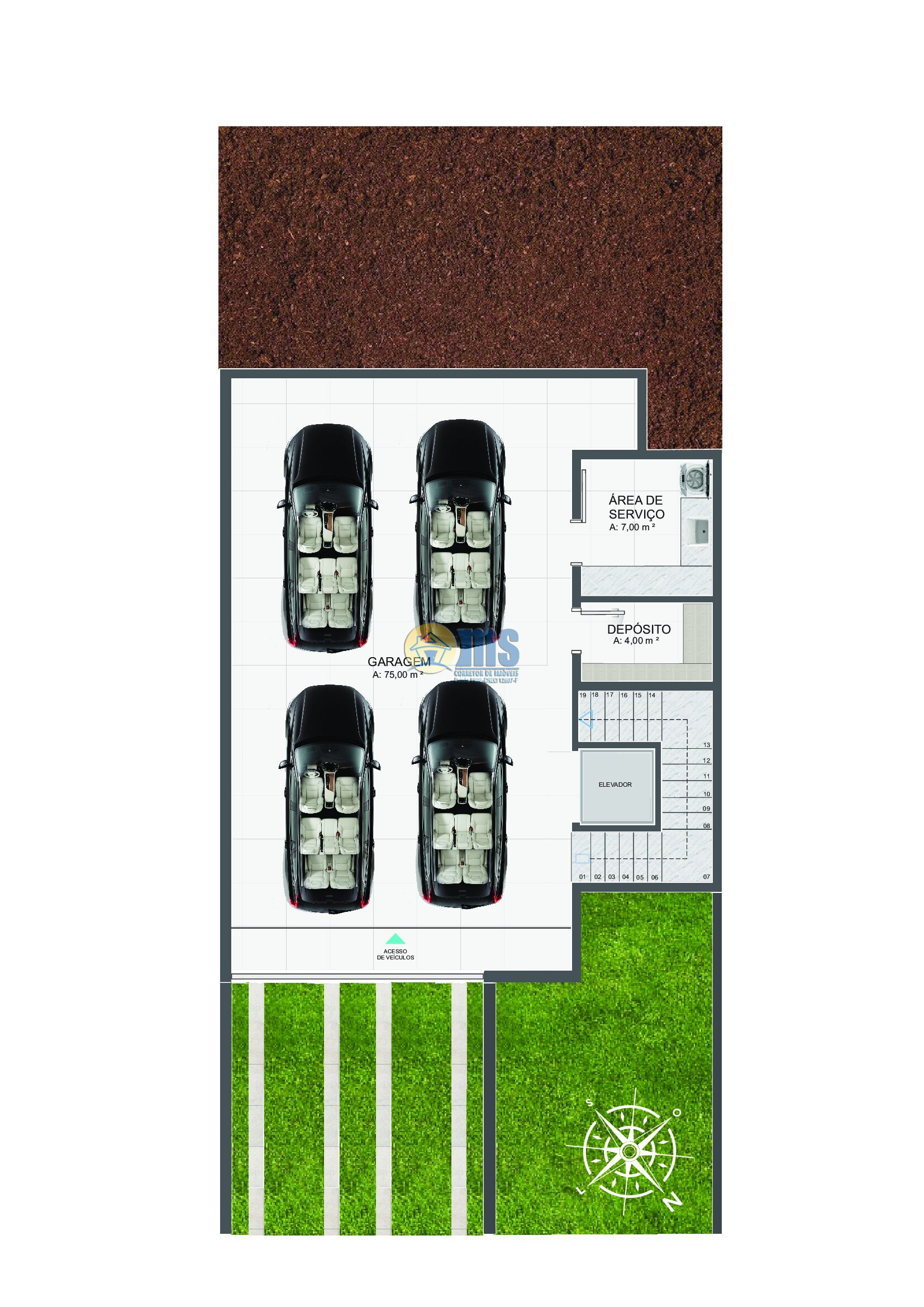 • Elevador com 3 paradas (subsolo, térreo e superior)